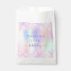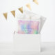 Arrière - plan girly tendance irisé avec des couleurs pastel unicorne et arc-en-ciel rose, violet, vert menthe. Décoré de confettis. Personnalisez et ajoutez un nom et un âge. Le mot anniversaire est écrit avec un script de style moderne écrit à la main.