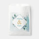 Un service de mariage personnalisé traite les sacs avec une aquarelle Eucalyptus vert thème botanique. Joli vert sauge pâle, bleu, or et blanc.
