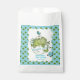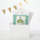 Préparez-vous à rugir d'excitation ! Ces charmants sacs de faveur sont la meilleure façon de remercier vos invités pour la célébration de votre petit. Le design est illustré d'une douce aquarelle d'un bébé dinosaure qui coule de son oeuf, entouré d'un feuillage, d'un oiseau charmant, et d'une jolie petite voiture de dino bleu, le tout sur un arrière - plan bleu clair avec un motif d'empreinte subtile en dino. Le sac peut être personnalisé avec le nom de la mère et la date du baby shower, ce qui en fait un souvenir unique et mémorable. Idéal pour le baby shower d'un garçon, ces sacs peuvent être remplis de gâteries, de petits jouets ou de faveurs festives. Le dessus rabattable est fixé avec une petite lingerie (non incluse), ajoutant une touche rustique et mignonne.