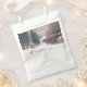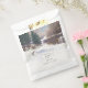 Une belle aquarelle Paysage neige hiver design mariage. Un design unique qui présente des pins à feuillage persistant aquarellés dans la neige avec un magnifique paysage en arrière - plan. Un design élégant avec des montagnes de neige et des arbres. Un mariage à thème neige hiver design sac de faveur avec des éléments bleu poussiéreux modernes. Des invitations de mariage et d'autres articles de papeterie sont également disponibles.
