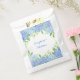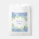 Ces sacs de faveur présentent un design floral aquarelle avec des fleurs d'hydrangée bleue et des feuilles vertes. Personnalisez-les avec votre texte.