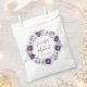 Cet élégant sac de fête de mariage d'inspiration bohème, rustique, a des fleurs botaniques clair, violet foncé lavande et argent aquarelle, des éléments floraux feuille et argent. Ajoutez le nom de la mariée et du marié au milieu de la couronne et la date du mariage. La copie est entièrement modifiable. Vous pouvez également modifier la police, la couleur et la taille de la police et la disposition des copies. Cette collection a des invitations assorties, enveloppes, autocollants, étiquettes et faveurs de fête. Parfait pour un mariage de printemps ou d'été. Faites coordonner tous vos articles mariages !