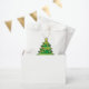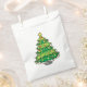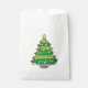 Arbre de Noël décoré de dessins animés avec des ornements dorés, des arcs rouges et des lumières.