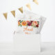 This beautiful and elegant birthday favor bag features watercolor burgundy red and orange flowers with foliage. The text combines handwritten script and serif fonts for a stylish and modern look. This is perfect for an autumn fall rustic birthday.