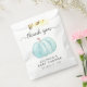 Jolie douche bébé garçon merci pour un sac avec une aquarelle bleu pastel d'un citrouille et "merci" dans un script gris élégant avec des swashes.