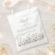 These sweet and simple baby shower favor bags are perfect for welcoming a little one with a touch of nature. The design features a beautiful field of hand painted watercolor wildflowers, adding a touch of color and whimsy. The template wording is fully customizable with your own name and date, making each favor bag a truly unique keepsake from the special day. These favor bags are sure to impress your guests and set the tone for a beautiful and memorable baby shower.