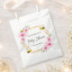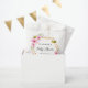 Un arrière - plan blanc décoré d'un faux cadre géométrique doré, de fleurs roses et d'abeilles souriantes joyeuses. Personnaliser et ajouter le nom de la momie à abeille et une date