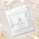 Ces sacs de baby shower privilégiés présentent un motif rayé bleu intemporel avec une illustration d'ours en peluche matelot de couleur douce. Tout le texte est entièrement modifiable. Pour une personnalisation plus avancée de cette conception, il suffit de cliquer sur le bouton "Customiser" ci-dessus.