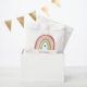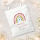 Rainbow Boho Baby shower bleu rose sac de faveur dispose d'un adorable duo d'arc-en-ciel dans les tons rose, blush, moutarde, aqua et marine, avec la calligraphie moderne.