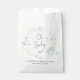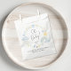 Sac de faveur Whimsical garçon baby shower avec aquarelles bleu pastel et jaune d'un arc-en-ciel, soleil, coeurs, étoiles, lunes et nuages et "Oh Baby!" dans un script de calligraphie élégant. Personnalisez le nom de la future mère et la date de la douche dans une simple typographie moderne.