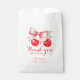 Envoyez les invités à la maison avec un régal élégant à l'aide de notre sac de faveur "Merci Berry Many" cerise. Doté de cerises d'aquarelle nouées avec un arc rose doux et une élégante typographie de script, ce sac personnalisable est parfait pour les bonbons, les biscuits ou les petits cachets. Personnalisez avec le nom de l’invité d’honneur et la date de l’événement pour une touche unique. Coordonnée avec la collection complète "Cherry on Top" pour un thème de baby shower cohérent.