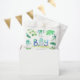 C'est un Boy Dinosaur thème baby shower Favor Bag! Le design présente un adorable dinosaure d'aquarelle juste haché d'un oeuf, typographie colorée, feuilles de palmiers et autres plantes botaniques. Customisez simplement en ajoutant le nom et la date de la célébration.