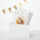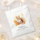 De mignons sacs de baby shower à thème boisé avec une aquarelle illustrant un écureuil de bébé entouré de feuilles d'automne dans les tons orange, rouge et jaune. Personnalisez les sacs de baby shower pour bébé écureuil avec le nom de la mère et la date du baby shower. Conçu pour coordonner avec notre collection de Baby showers d'automne pour animaux de bois mignons.