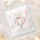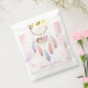 Dégustez vos invités de baby shower avec ces sacs de faveur de rêve en aquarelle enchanteurs! Présentant le même design délicat peint à la main que votre collection correspondante, ces sacs présentent un attrapeur de rêve qui berce une petite fille endormie, ornée de douces touches de pêche, de lavande et de feuilles d'or. Les plumes pastel et les minuscules étoiles pendantes créent un regard cohésif et éthéré à travers toutes vos faveurs de fête. Paire avec nos étiquettes cadeaux assorties et autocollants pour une présentation de faveur parfaitement thématique!