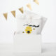 Baby shower doux et capricieux présente deux abeilles volant au-dessus d'une ruche.