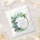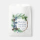 Baby shower d'hiver éditable merci pour les sacs, aquarelle bleu poussiéreux baies d'hiver sur branches de pin enneigé flocons merci pour les sacs décontracté moderne
