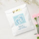 Sacs baby showers avec une image charmante des empreintes de bébé bleu avec un contour blanc épais. Pois blancs sur un arrière - plan bleu bébé derrière l'illustration.