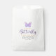 Lindo diseño de bolsa para regalo, con una Hermosa Tematica de Mariposas y flores en acuarela en tonos Rosas y Purpuras. con linda tipografia dorada con la frase " A LITTLE BUTTERFLY IS ON THE WAY" un fondo amarillo claro es ideal para recibir a esa dulce niña que viene en camino! ideal para Baby shower de niña. Se puede personalizar con el nombre de tu bebe.