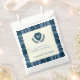 Pour la future mère qui attend un bébé garçon. Baby shower bleu marine plaid monogrammed merci pour les sacs qui peuvent être personnalisés avec l'inclusion de vos détails de baby shower. Inclure votre initiale de monogramme qui apparaîtra dans la conception de la crête. Le design est élégant, preppy et classique et parfait pour la future mère qui attend un petit garçon.