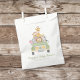 Un joli sac de faveur neutre pour les femmes qui présente une aquarelle illustrant les bébés animaux (lion, éléphant, zèbre, singe et girafe) entassés dans un véhicule safari et "Merci tellement !" et le nom de la mère dans un script vert jungle.