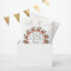 Un élégant mémorial funéraire célébration de la vie faveur sac avec une couronne de fruits colorés.