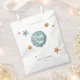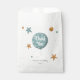 Complétez les faveurs du premier anniversaire de votre garçon avec ces adorables sacs de remerciement d'anniversaire. Les couleurs bleu et orange du ballon et des étoiles sont apaisantes et belles. Personnalisez le texte avec votre propre. Illustré et dessiné par Patricia Alvarez.
