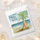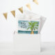Bébé à bord ! Baby shower invitation - parfait pour un baby shower d'été. Plage à thème. Watercolor design a une scène océan et plage avec surf, palmier et casquette d'été.
