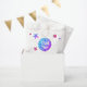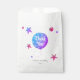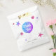 Complétez les faveurs du premier anniversaire de votre fille avec ces adorables sacs de remerciement d'anniversaire. Les couleurs violet et rose du ballon et des étoiles sont amusantes et énergiques. Personnalisez le texte avec votre propre. Illustré et dessiné par Patricia Alvarez.
