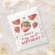 OEuvre florale d'aquarelle de fraise amusante. Fraises et fleurs ! Police de script douce. Thème d'anniversaire de la fraise douce aux baies roses pour enfants. Facile à personnaliser. Invitations disponibles en téléchargement numérique ! Printemps, fêtes d'été