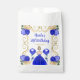 This birthday favor bag features an elegant gold frame, a beautiful princess with blonde hair and a royal blue dress, flowers and a balloon. This is perfect for a birthday party.