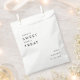 Présentant notre blanc moderne Bold Mariage Love Is Sweet Favor Bag design, une représentation authentique du minimalisme moderne et de l'élégance. Avec son mélange unique d'éléments créatifs et de design chic, ce design est parfait pour ceux qui recherchent une esthétique polie et audacieuse lors de leur journée spéciale. Notre élégante typographie décalée apporte une touche de sophistication intemporelle à votre mariage, que vous planifiez votre grand jour pour le printemps, l'été, l'automne ou l'hiver, la polyvalence de ce design assure une personnalisation facile pour toute saison. Le noir et blanc classique offrent un cadre neutre et clair qui garantit que votre esthétique mariage sera sans effort sur le point. Comme pour tous nos designs, si vous avez des questions ou des demandes spéciales, n'hésitez pas à demander.