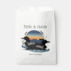 Une paire de huards sur le lac avec un coucher de soleil chaud derrière eux, le tout dans un décor bleu