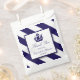 Ces sacs-cadeaux sont parfaits pour tout couple qui planifie un mariage romantique en bord de mer. Le design est orné d'un motif blanc marine bleu navire sur une marine nautique et un arrière - plan rayé blanc. La conception simple peut être personnalisée pour convenir à votre événement spécial et sera le sac cadeau/faveur parfait pour toute fête nautique sur la plage, y compris : douches nuptiales, fiançailles, wedding showers, fêtes d'anniversaire et bien plus encore.