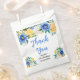 This beautiful and elegant birthday favor bag features watercolor blue, yellow and white flowers with foliage. The text combines handwritten script and serif fonts for a stylish and modern look. This is perfect for a spring or summer rustic birthday.