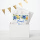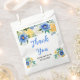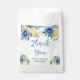 This beautiful and elegant wedding favor bag features watercolor blue, yellow and white flowers with foliage. The text combines handwritten script and serif fonts for a stylish and modern look. This is perfect for a spring or summer rustic wedding.