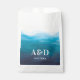 Moderne. Élégant. Cette suite fixe utilise des lignes épurées, des polices de caractères classiques et une aquarelle avec des vagues bleues pour créer un look élégant pour votre journée spéciale.