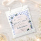 Bienvenue à votre petit prince dans le style avec notre sac de baby shower sucré aux bleuets. Ce design présente des bleuets aquarellés et des fleurs sur un arrière - plan en vichy bleu. Le thème idéal pour un baby shower d'inspiration été.