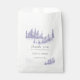 Mariage d'hiver merci préférez les sacs à l'aquarelle pittoresque dans les tons lavande et gris. La scène de la neige présente un paysage de montagne romantique avec des pins, des dérives et une légère neige. Si vous souhaitez faire correspondre des produits, s'il vous plaît parcourez ma collection de forêt d'hiver.
