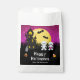 Ce sac de faveur amusant et éffrayant présente de mignonnes momies à côté d'une maison hantée tordue. Dans l'arrière - plan est une pleine lune avec des chauves-souris et un ciel rose de nuit avec des étoiles. Le texte combine les polices décoratives et serif pour un look élégant et moderne. C'est parfait pour une fête d'Halloween.