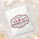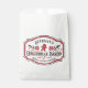 Ce sac favori de style ferme présente un design de logo qui dit "Boulangerie de Pain d'Épice de Mme Claus". Les couleurs incluent le rouge et le noir.