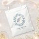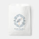 Un sac de faveur fantaisiste comporte une cigogne grise entourée d'une bordure bleue inspirée du romarin sur un arrière - plan bleu. La cigogne a un design d'art populaire embelli sur son aile en marine, gris, rouge et orange. En dessous du design est un endroit pour customiser vos sacs de faveur avec un nom et une date.