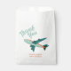 Ce modèle de sac de baby shower moderne et mignon présente un design de voyage en avion bleu, avec ciel bleu et nuages. Il y a aussi de la place pour ajouter vos propres noms/textes.