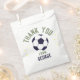 This cute and modern sports-themed kids birthday thank you favor bag design features a soccer ball and stars design with green and navy blue lettering. The bags can be personalized with your boy's name. The perfect sporty addition to your kids birthday party!