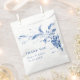 Ce sac de faveur de mariage est le moyen parfait pour faire une impression durable. Son design élégant présente un magnifique arrangement floral éthérée bleu et blanc comme point central de la partie supérieure créant une atmosphère délicate et gracieuse pour une célébration inoubliable.