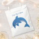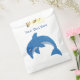 Ce sac de faveur de fête a un adorable dauphin qui est bleu et blanc brillant en position de saut. Idéal pour les fêtes d'enfants ou un thème océanique. Customisez votre texte avec le modèle.