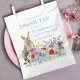 Chasse aux oeufs et brunch de Pâques autocollants de remerciement personnalisés idéaux pour sacs de faveur avec mignon lapin de Pâques et fleurs colorées d'aquarelle dans un design de pré fleur sauvage. Belle conception de boho Idéal pour la fête du jardin de printemps et parfait pour les sacs de faveur et les sacs de chasse aux oeufs de Pâques. Script de typographie à écriture bleue Cornflower avec modèle facile d'utilisation pour ajouter un nom de famille. Design minimaliste moderne simple parfait pour une fête de jardin de printemps chasse aux oeufs de Pâques. OEuvre originale de l'artiste Catherine Sweetman