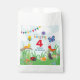 Ce sac de faveur d'anniversaire de bug est amusant et coloré, avec une fête de bug comprenant une abeille mignonne, araignée violette, chenille, fourmi, coccinelle, papillon et escargot - le tout célébrant l'anniversaire de votre enfant. Drapeau arc-en-ciel, fleurs et nuages blancs bouffants ajoutent à l'atmosphère festive. Les filles comme les garçons adoreront ces personnages de bug !