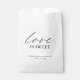 Sacs de mariage simple Favor avec "l'amour est doux" en calligraphie avec vos noms et date mariage en noir et blanc. Un design minimaliste avec typographie chic pour une touche élégante.