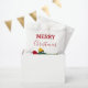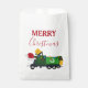Un joli exemple d'un camion à ordures de recyclage de Noël portant un chapeau de Père Noël et décoré de lumières de Noël avec des mots "Joyeux Noël". Un sac de Noël idéal pour les amateurs de camions à ordures grands ou petits, filles ou garçons.