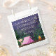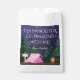 Fille glamping fête d'anniversaire sacs de faveur avec une tente rose mignonne et feu de camp sur un arrière - plan de la forêt de nuit étoilé. Ces filles mignonnes camping fête d'anniversaire sacs sont facilement customisés pour votre événement en ajoutant simplement vos détails dans le style de police et le libellé de votre choix.